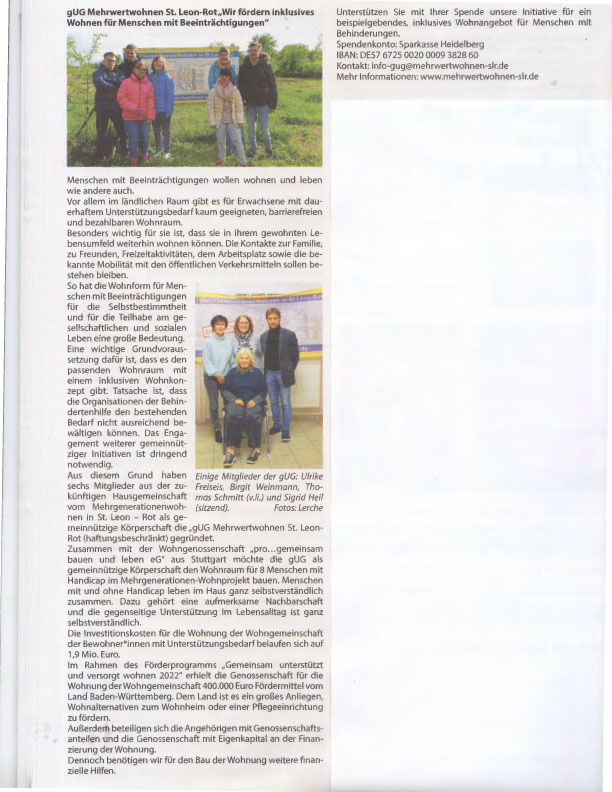 gUG Mehrwertwohnen St. Leon-Rot – Wir fördern inklusives Wohnen für Menschen mit Beeinträchtigungen
